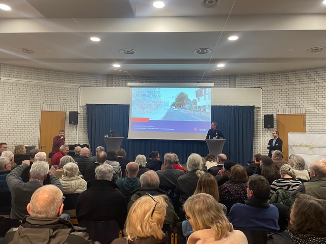 Rappelvoll war das Freizeitzentrum Schnelsen am Dienstagabend. Mehr als 240 Bürger wollten wissen, wie das Bezirksamt Eimsbüttel die Frohmestraße ab Frühjahr 2025 umbauen will. Vorgestellt wurden zwei Varianten, die das Bezirksamt gemeinsam mit der Verkehrsdirektion und der Polizei, aber ohne Beteiligung der Eimsbütteler Bezirkspolitiker und den Gewerbetreibenden in der Frohmestraße, geplant hat.